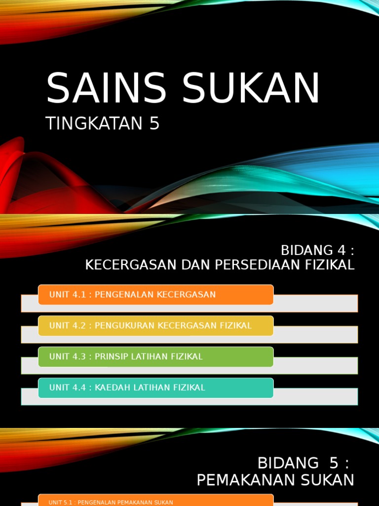 Download as PPT PDF TXT or read online from Scribd. Selari dengan perkembangan pesat teknologi digital Kementerian Pendidikan Malaysia akan menggunakan teknologi dan kandungan digital dalam dalam bidang pendidikan. Empat bidang utama yang menjadi fokus dalam Buku Teks Sains Sukan Tingkatan 5 ialah i Kecergasan dan Persediaan Fizikal ii Pemakanan Sukan iii Asas Psikologi Sukan dan Sosiologi Sukan dan iv Kecederaan Sukan dan Langkah Pencegahan.